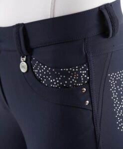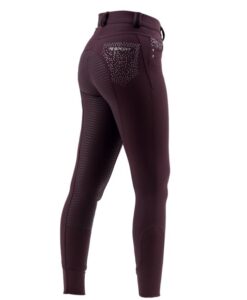 Sophisticated ladies breeches engineered with a full gel seat of medium weight gel for added security in the saddle.